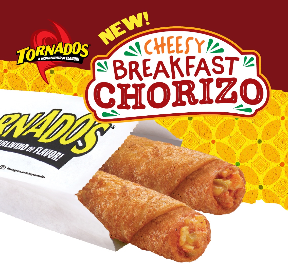 Capitalize on consumers’ desire for global flavors with Cheesy Breakfast Chorizo Tornados®. Every bite is loaded with scrambled eggs, Monterey Jack and Cheddar cheese, fiery chorizo, hearty potatoes, tomatoes, and jalapeños.