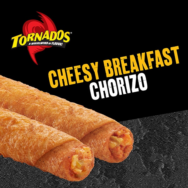 It’s our boldest breakfast offering yet. Spice up your A.M. lineup with these Tornados® crafted with scrambled eggs, Monterey Jack and Cheddar cheese, chorizo, potatoes, tomatoes, and jalapeños. They’re perfect for consumers looking for a new, exciting breakfast or snack option.