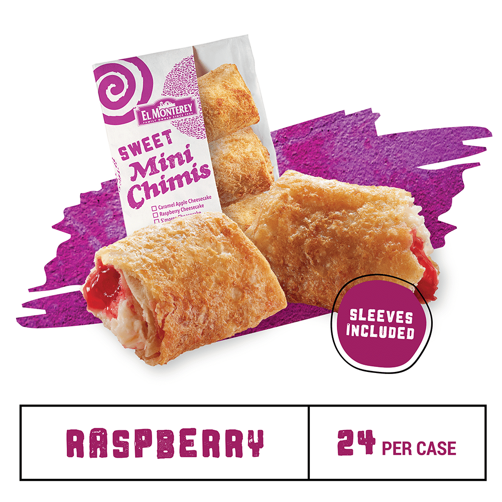 Sweet, tart and oh-so-delicious, these chimis have a creamy cheesecake and raspberry filling inside a tasty, crispy tortilla. Perfect for whenever consumers are in the mood for a special treat.